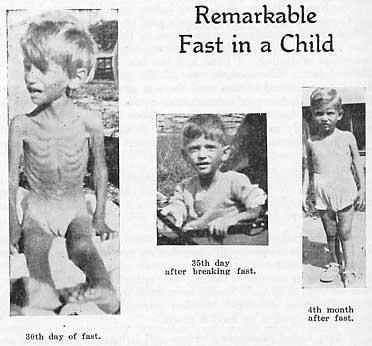 It has been fully demonstrated that repeated short fasts, of one to three days, in growing animals, when recovery is complete between fasts, produce better growth and greater strength. Children are not harmed by fasting, but only by starvation.