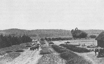 On Chipoli three wagons are used for spreading at the same time; each wagon carries something over 3 tons of finished compost. Four natives fill the wagons at the heaps and as soon as a wagon arrives in the field it is boarded by four other natives with shovels or forks who spread the compost on a strip of predetermined width as the wagon moves slowly along. On an average, taking adjacent and more remote lands, one wagon makes eight trips a day; thus with a total of fourteen natives we spread some 75 tons of compost a day. Spreading 1,000 tons thus takes 200 native days. In other words, the whole operation from cutting the waste materials to spreading the finished product on the land takes 2,000 native days. This means that the work of two natives for one day is required for each ton of compost made and spread on the land.